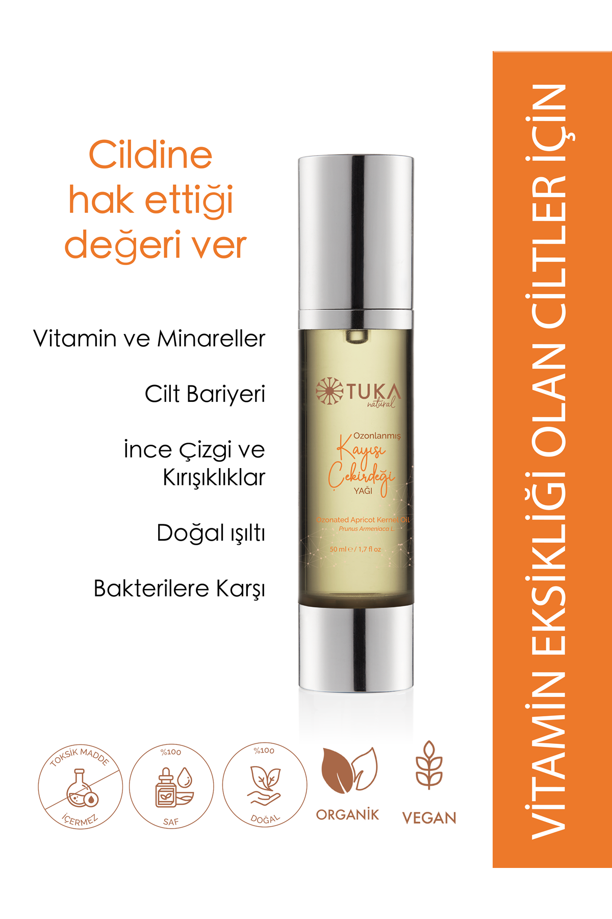 Cildi nemlendiren ve yenileyen ozonlu kayısı çekirdeği yağı.