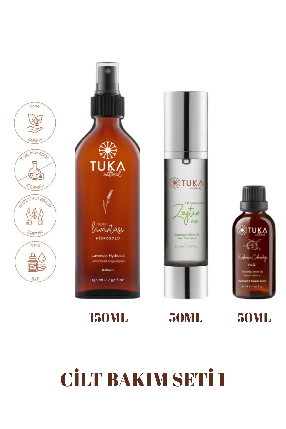 Cilt Yenileyici ve Gözenek Sıkılaştırıcı Doğal Bakım Seti; lavanta hidrosolü, ozon yağı ve kuşburnu çekirdeği yağının birleşimiyle cilt bariyerini güçlendiren, gözenekleri sıkılaştıran ve cilde parlaklık kazandıran özel bir üçlüdür.